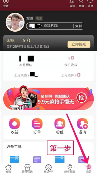 1、第一步:打开蜂鸟部落APP后,点击我的;