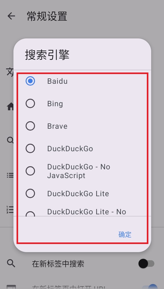 5、选择自己想要的搜索引擎,之后点击确定即可。
