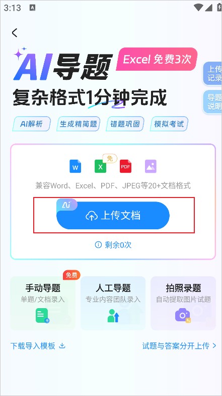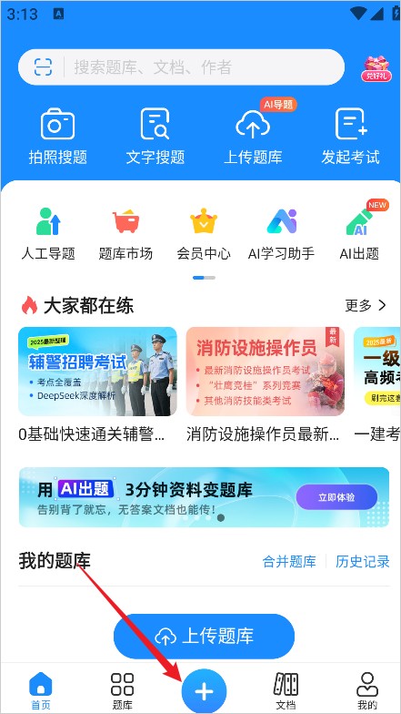 用户也可以自行上传题库,丰富学习资源。