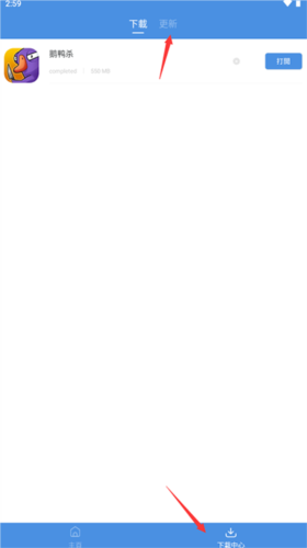 1、打开gamestoday后,点击右下方的下载中心,上方会有更新按钮点击。