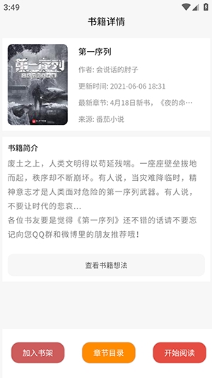 3、点击对应的小说,在详情页面,选择开始阅读或者加入书架。