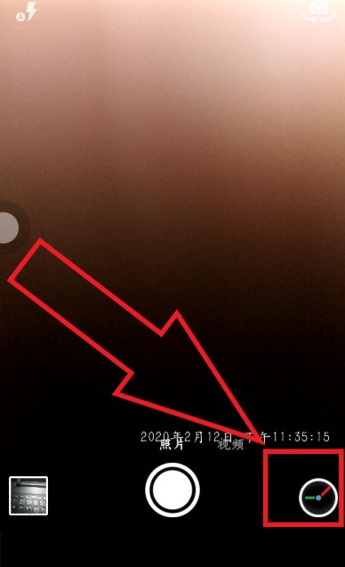 然后,打开【时间相机APP】,任意取景拍照,拍到的照片打开时候,右下角就会显示拍照日期和时间。我们点击右下角的设置按钮,进行更改。
