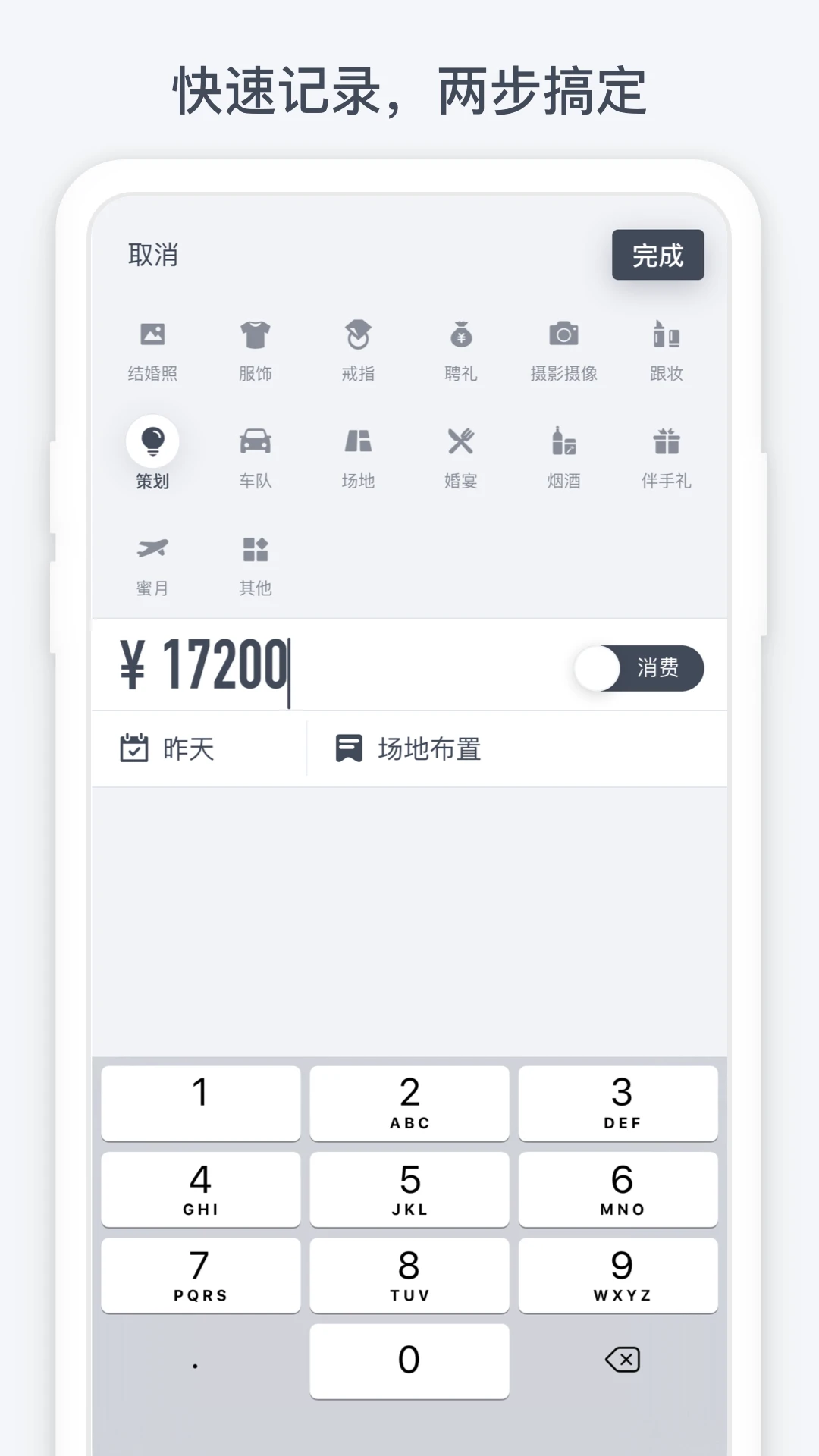 两步操作:选择账本→输入金额,3秒完成一笔记录,支持语音输入、拍照识别发票,彻底告别繁琐流程。