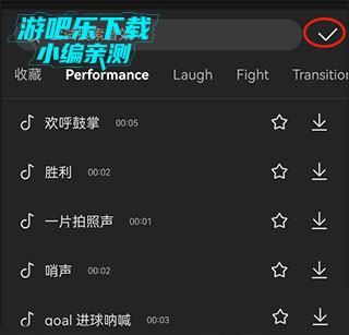 3、选取好自己想要的音乐,然后点击右边的【对钩】就可以了哦,你们学会了吗,还没有学会的小伙伴,赶紧试试吧!