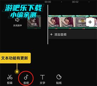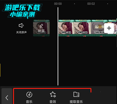 2、在创建一个新项目后,剪辑界面下边有一个音频选项,然后点击底部【音频】进入音乐编辑页面就可以选择音乐了哦,音乐可以选择软件自带,也可以自己上传,还可以是TIKTOK收藏的;