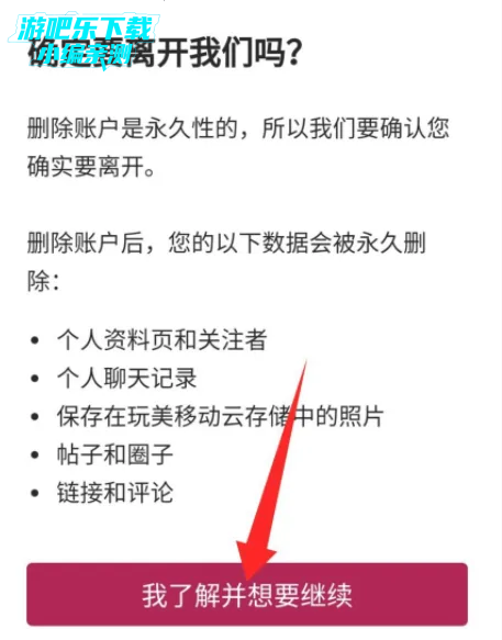 然后在打开的删除账户页面,点击我了解并想要继续,就可以删除了。如图所示