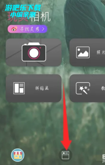 在玩美相机底部选项中,点击中间的图标打开。如图所示