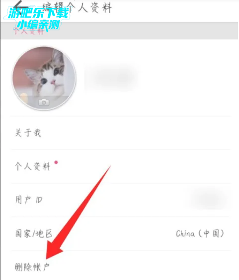 在打开的编辑个人资料页面,点击底部的删除账户。如图所示