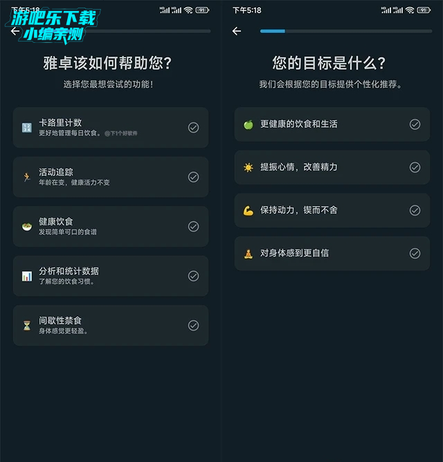 首次使用会让你选择需求,包括你的目标计划、输入你的个人信息,例如年龄、体重、身高等。