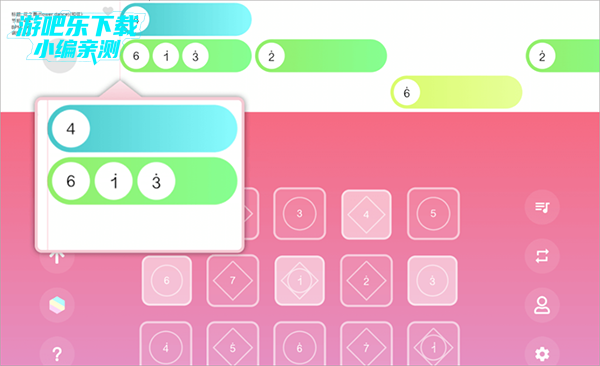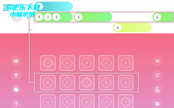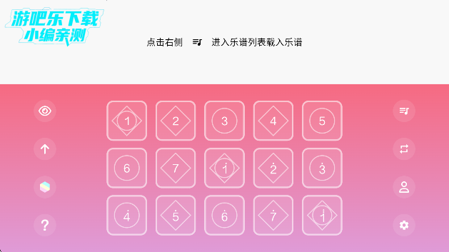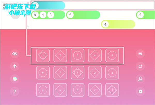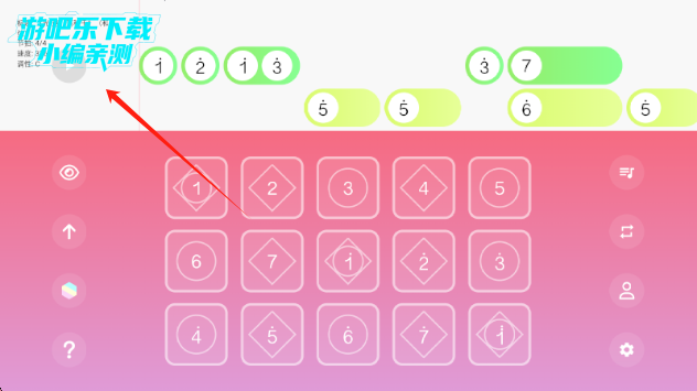 3、点击歌曲标题稍等片刻乐谱将加载到练习界面,乐谱分为三行,第一行对应键盘的第一行按钮。