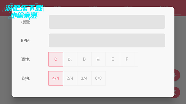 3、轻点+号,输入您歌曲的基本信息,点击确认即可进入创作界面。
