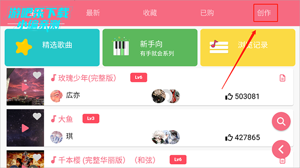 小提示:在创作乐谱列表,点击乐谱可以继续编辑,左滑乐谱可以删除草稿。