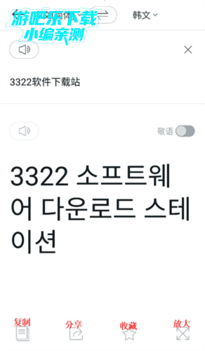 3、然后编辑你想翻译的中文,下方就会出现对应的韩文,还支持语音哦!