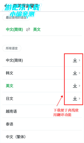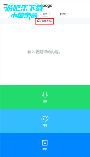 2、点击上方相对应图标即为对应翻译功能,例如“中韩翻译”,如果想要离线使用翻译功能,可以选择是否下载语言包,如下图: