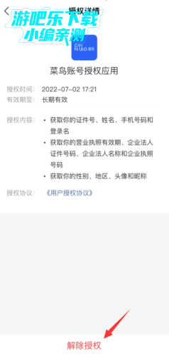 4、找到菜鸟账号授权,然后选择接触绑定,该解绑后还是可以重新绑定的,用户无须担心!