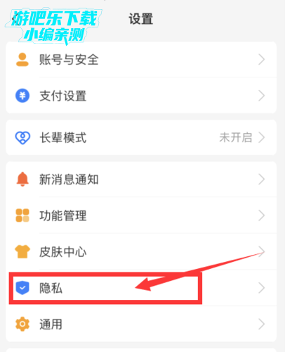 2、进入设置界面后找到“隐私”设置栏,点击进入。