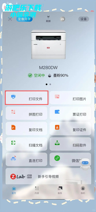 1、打开联想至像打印选择,打印文件并打开你需要打印的文件资料即可。