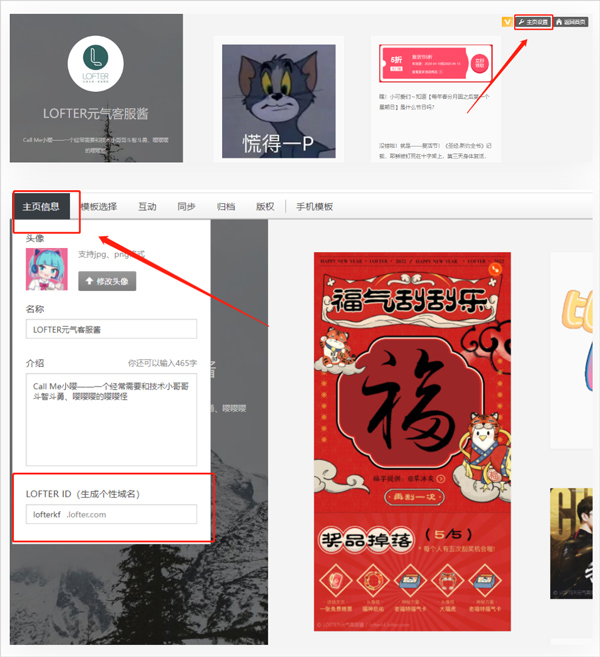 进入个人主页,点击右上角【主页设置】后,点击顶部菜单栏【主页信息】,即可修改id个性域名