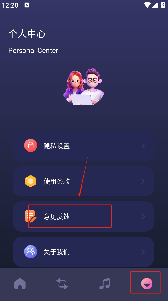 进入软件点击我的点击意见反馈