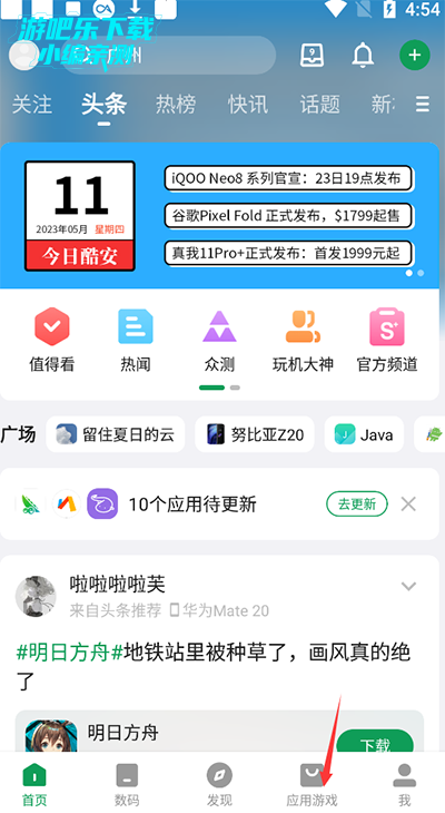 1、在y8l下载安装好酷安app官方版后,进入到主页面点击下方的《应用游戏》。