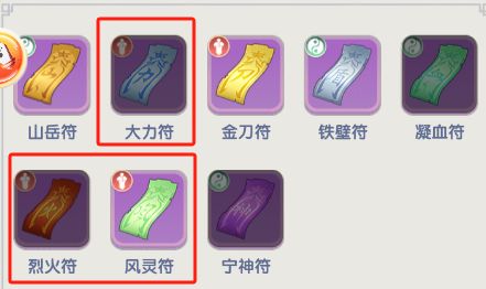 分别是大力符、烈火符与风灵符。这三个前期在加伤害加暴击上有很大的输出帮助。