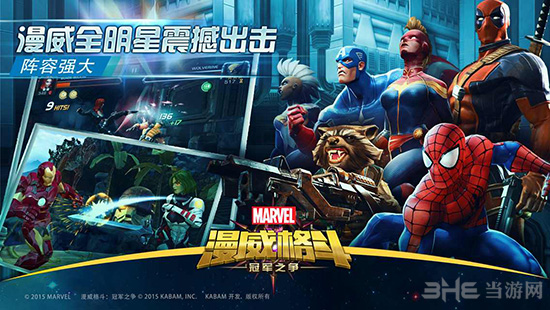 2、漫威正版授权,游戏全面收录漫威漫画及电影中出现的热门角色,力求满足超级英雄的粉丝们的收集需求。目前游戏中包括美国队长、钢铁侠、浩克和鹰眼,以及金刚狼和暴风女以及来自“银河护卫队”中的星爵、火箭浣熊和卡魔拉等众多具有代表性的大牌明星。随着《蚁人》等电影的上映,还将陆续加入更多玩家喜爱的重量级角色。而在反派方面,万磁王和奥创的登场让原本顶级的阵容变的更加震撼且潜力无穷!