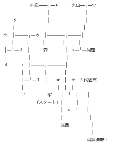右右右左,水之庭园:右左。 右左右左左,炎之火山:左右。
