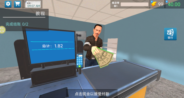 3、在收银台接待结账的顾客,收取金币并管理账目,还要应对各种突发状况保持超市正常运行。