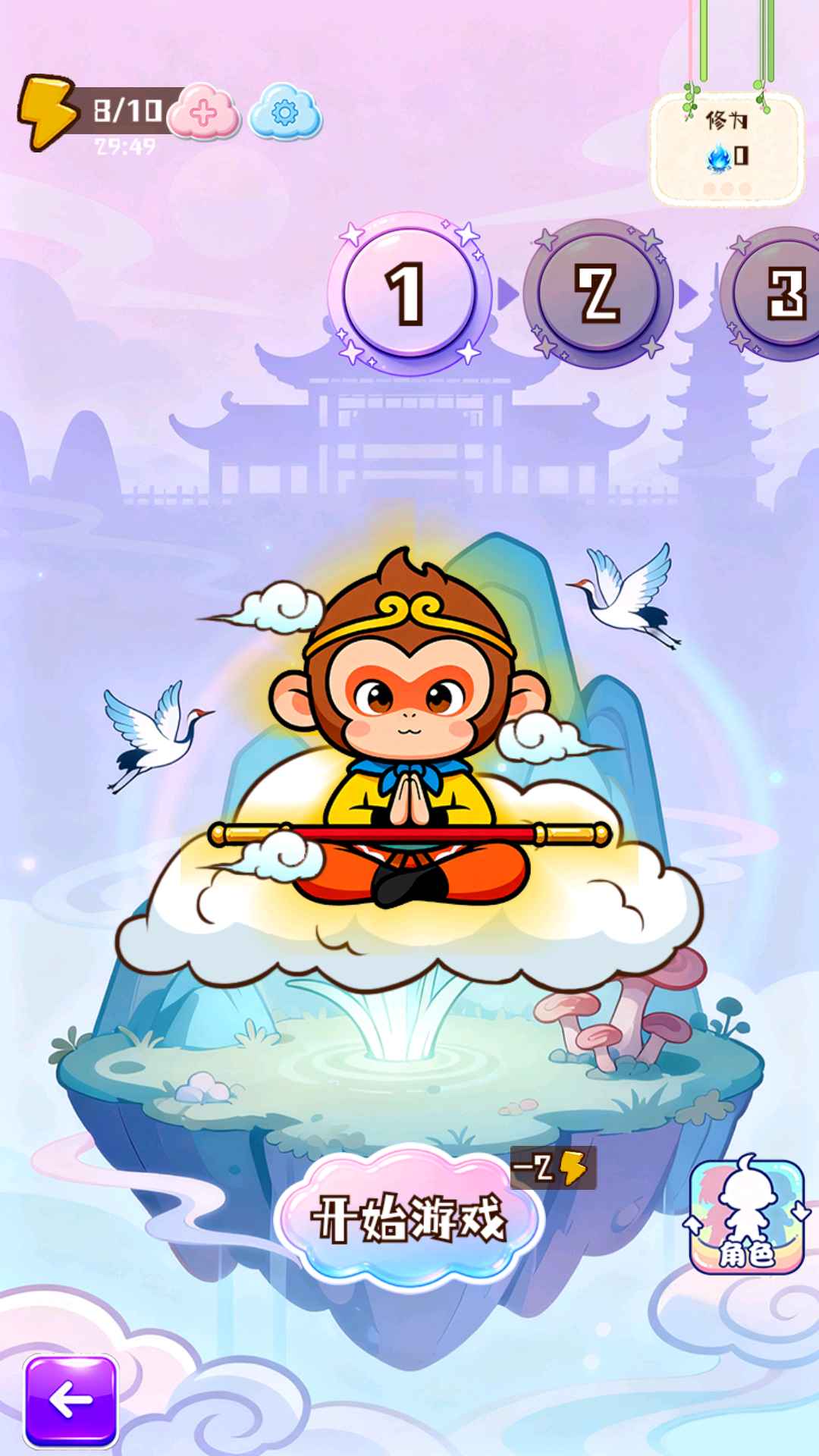 2、关卡设计充满意想不到的脑洞,不是无脑打怪,而是得利用地形和角色特长解谜,比如和妖怪比赛吃蟠桃才能过关,超有新鲜感。