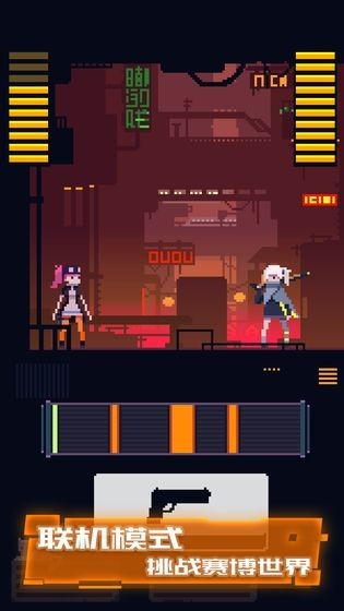 赛博牛仔游戏提供给大家超棒的像素风游戏,为你展现了一个充满赛博朋克感觉的城市,你将在这里开启战斗冒险的挑战。当你加入游戏后,可以选择单人模式或者联机模式,能够从两方面确保玩家的游戏体验。在对战过程中,可以灵活控制角色移动和输出,从而击败对手,获得胜利。