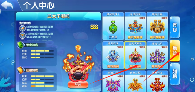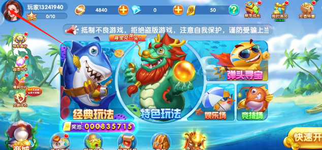 2、玩家进入游戏点击左上角头像功能符号,即可进入炮台购买界面进行下一步操作。